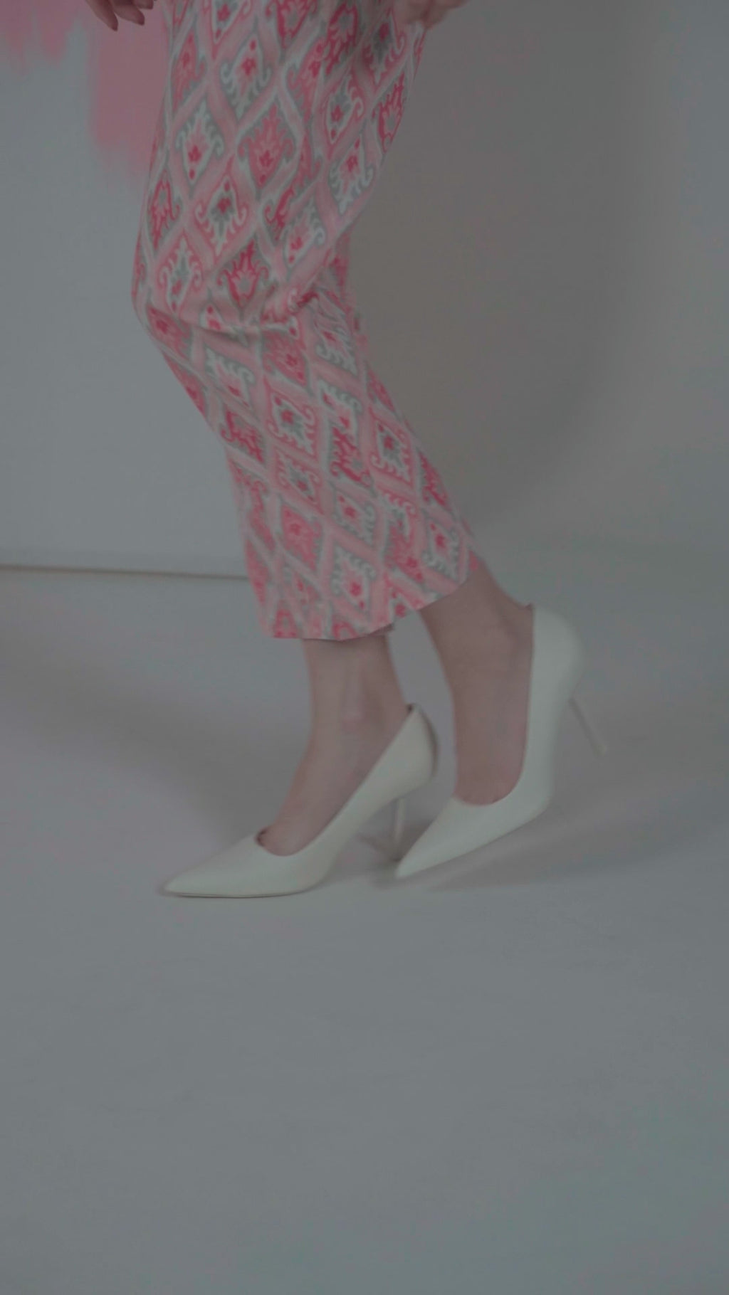 Pink cotton flex ikhat print coat with front pockets and buttons, has a lapel collar and full sleeves. It comes with an attached cotton lining. This coat has separate inner with adjustable straps. Pink cotton flex ikhat print pant. This three piece co-ord set includes coat with inner and pants.