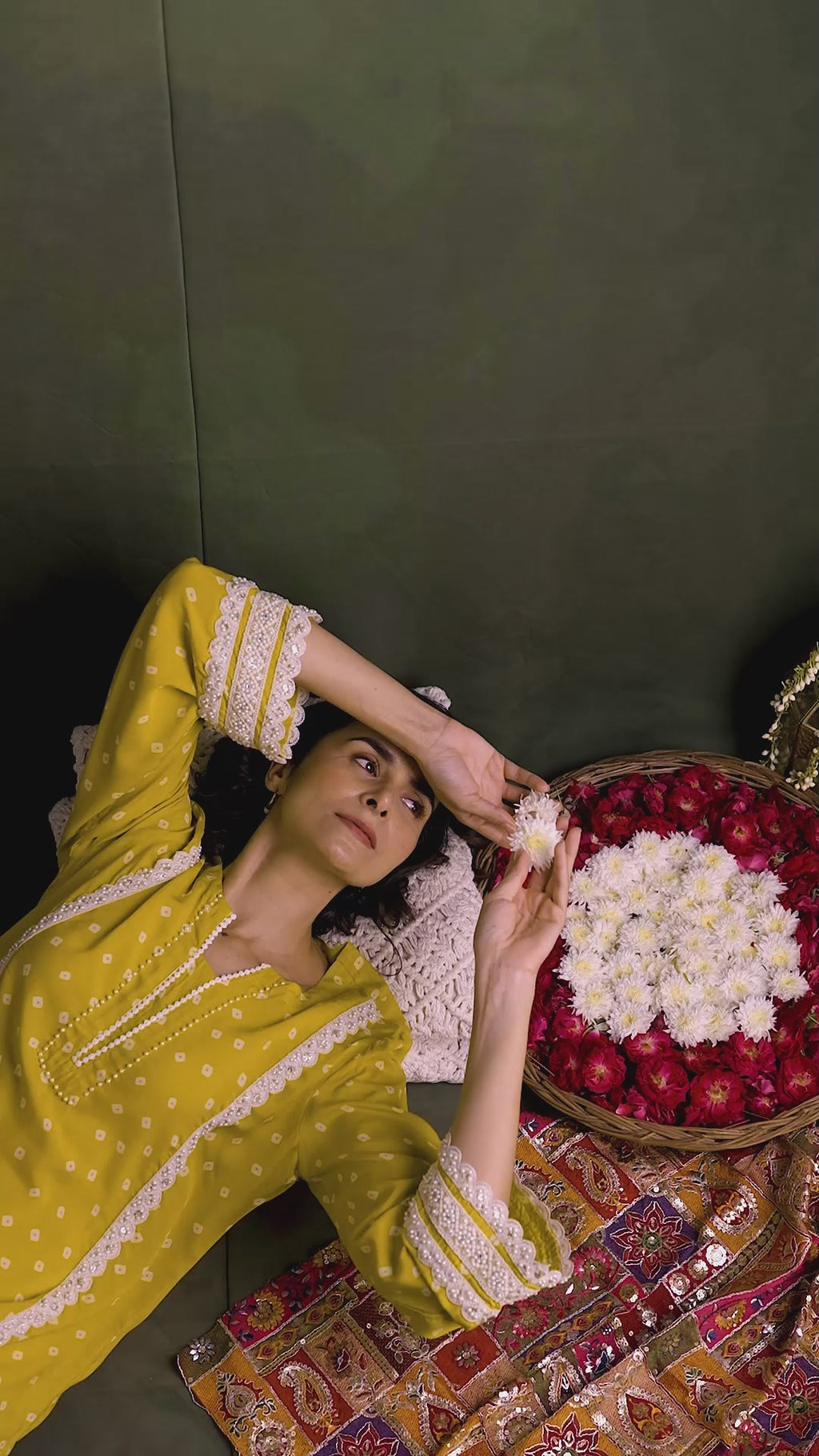 Yellow Printed Modal Co-Ord Set, designed to offer a perfect balance of style and comfort. The intricate lace adorned with delicate pearl beads enhances the overall refined look. this versatile co-ord set offers timeless appeal with a modern twist.