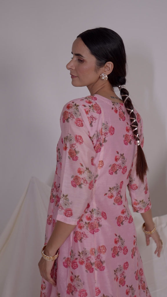 Pink Floral Print A-Line Kurta
