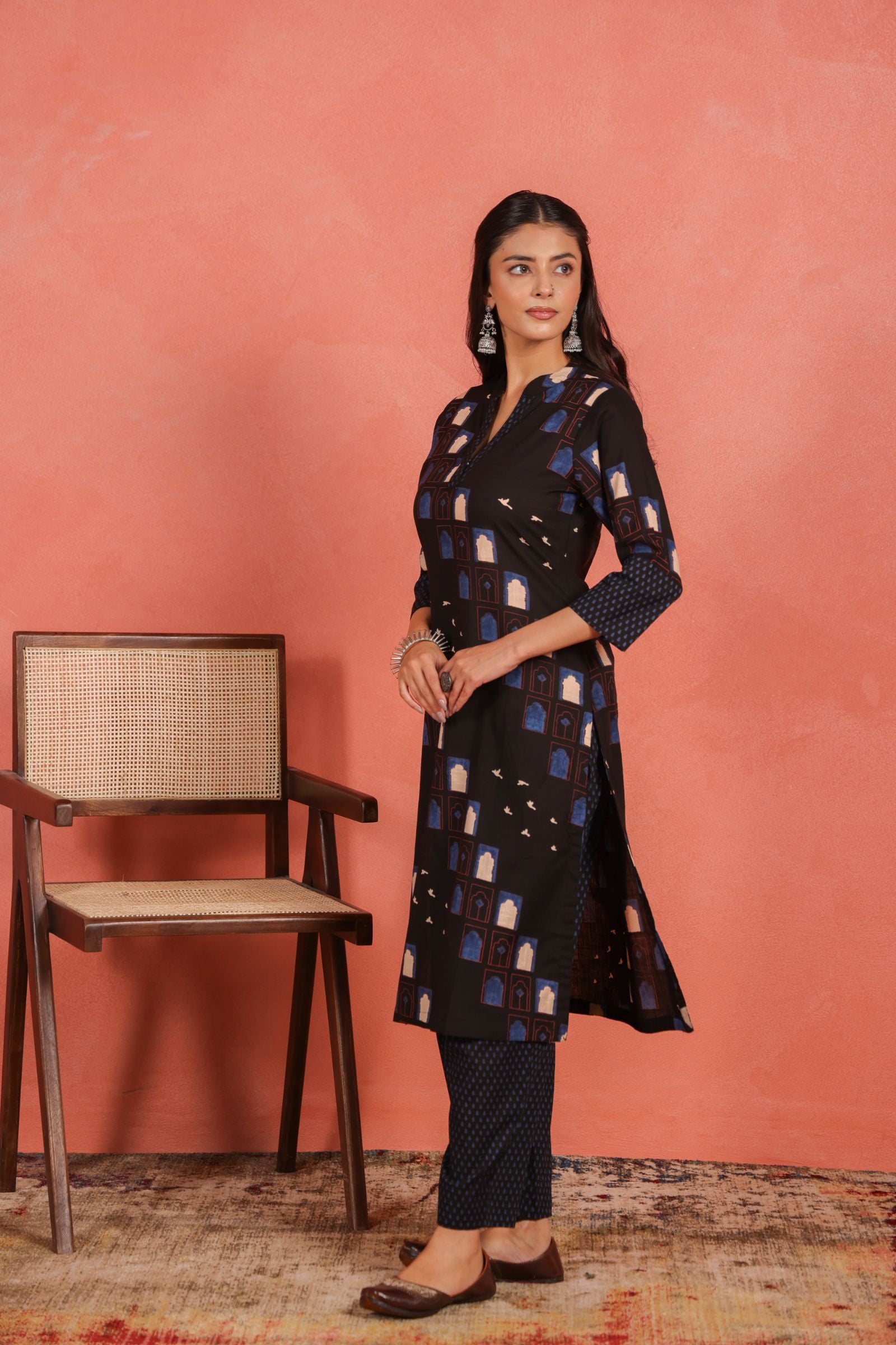 Style it with silver hoops or jhumkas and flat sandals for a refined yet effortless look. This set embodies simplicity, versatility, and understated elegance, making it a wardrobe essential for women who appreciate minimalist ethnic fashion.