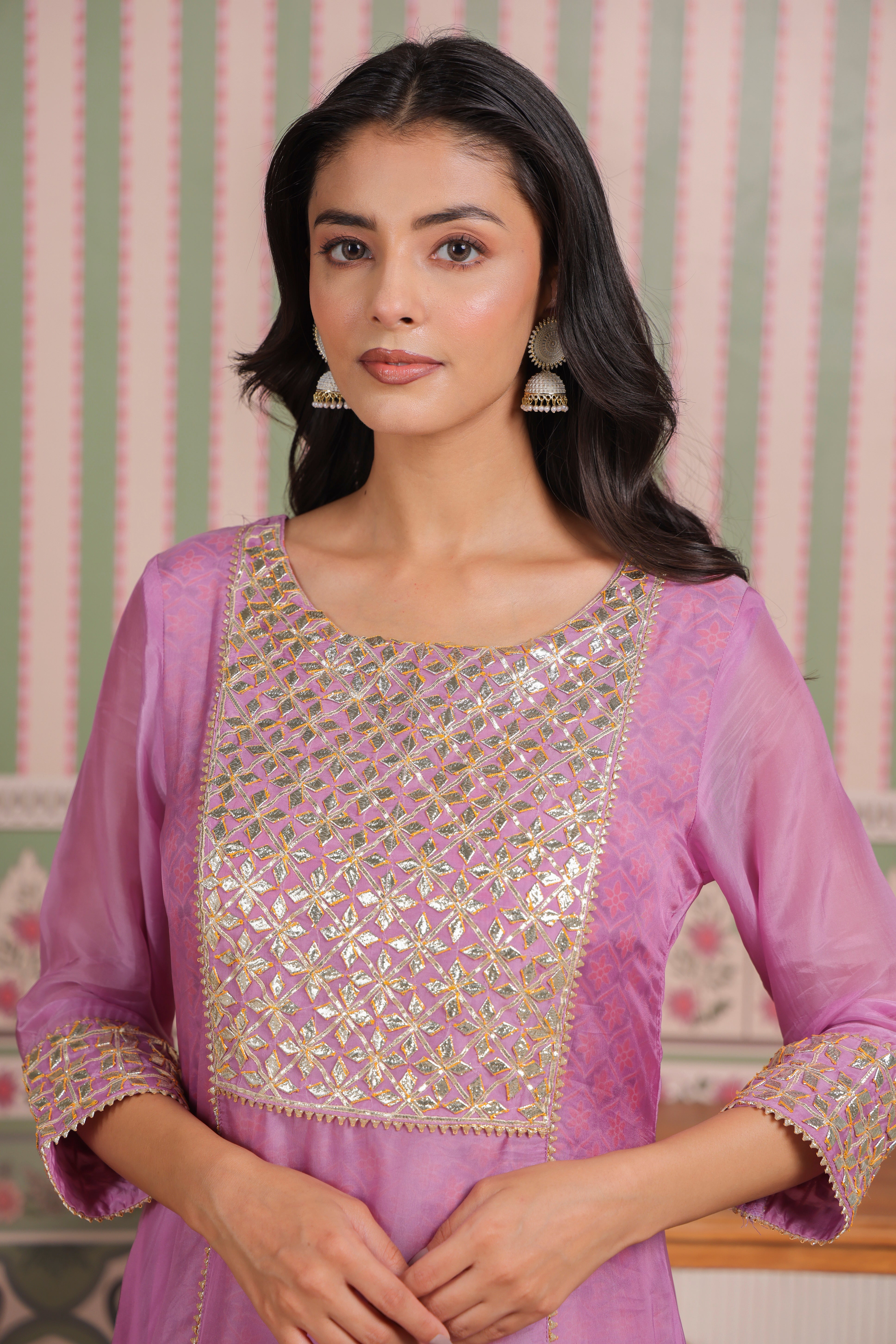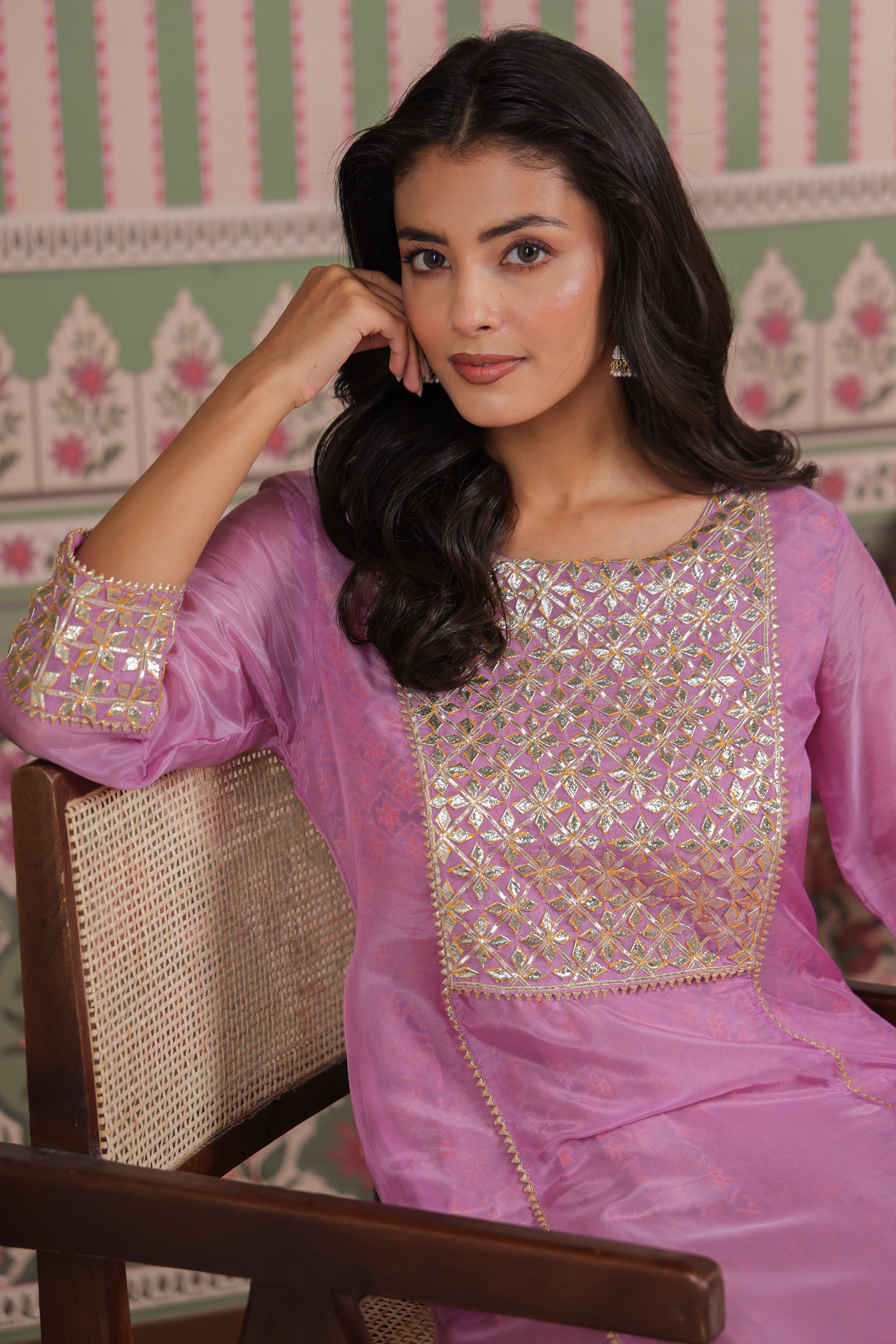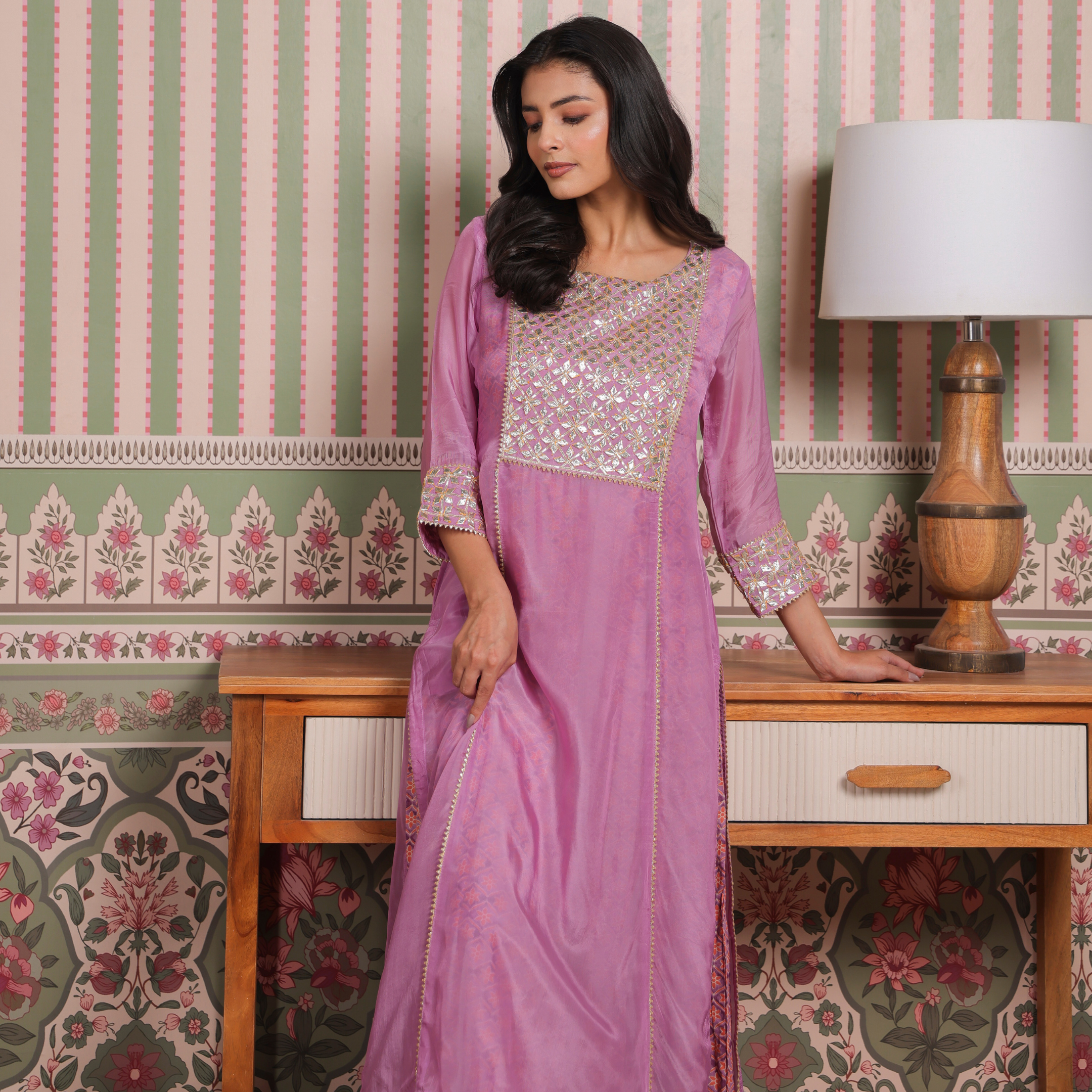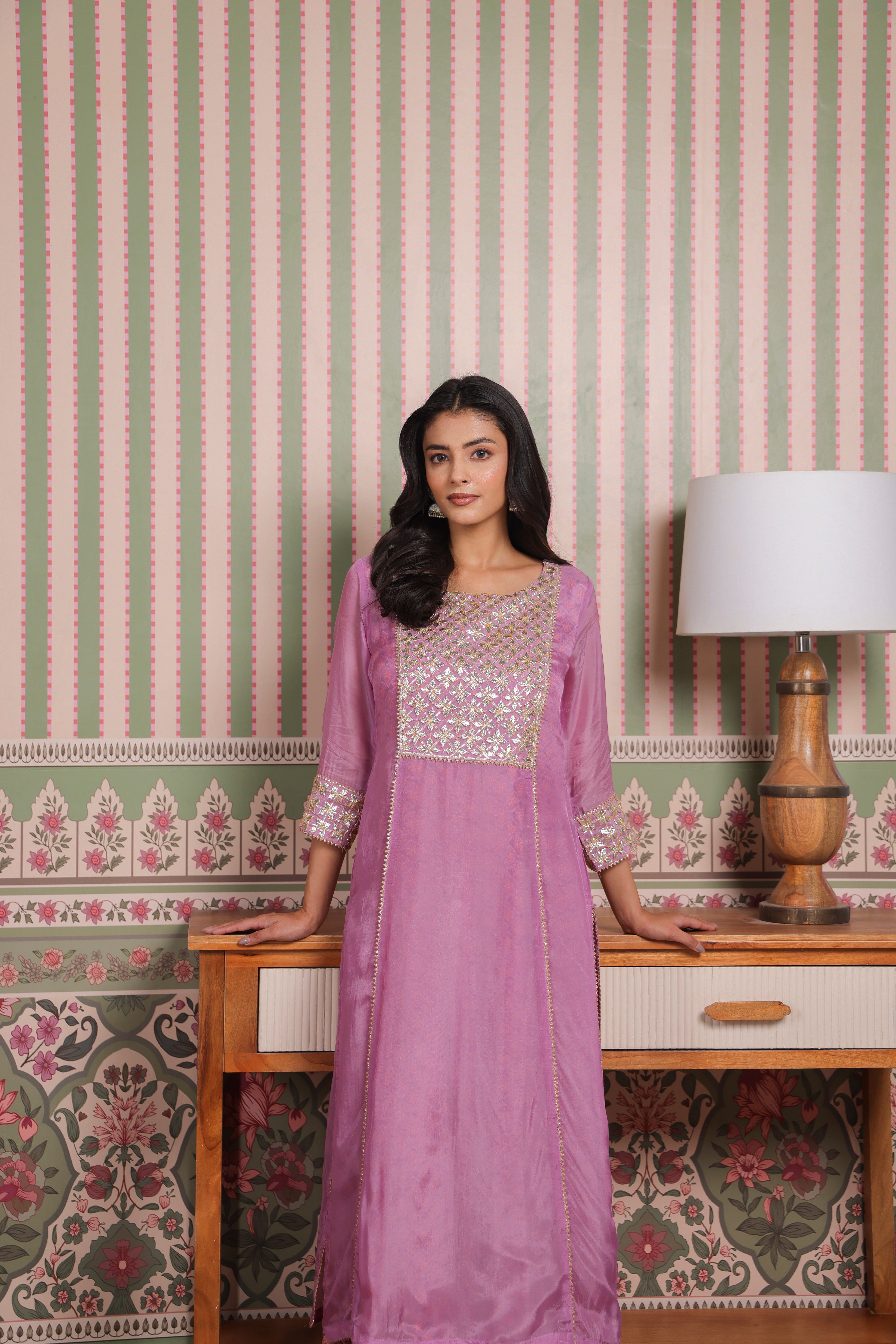 Mauve Double Layered Organza and Modal Kurta with Gota Patti Embroidery