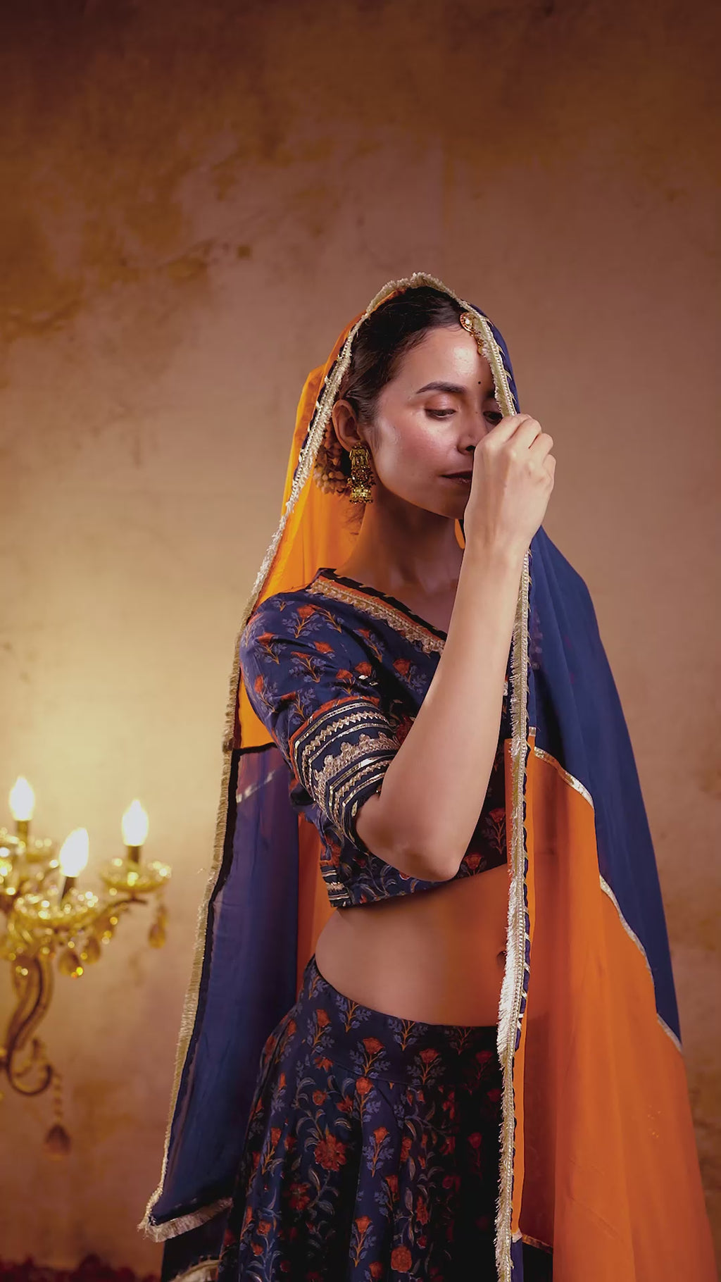 This exquisite Blue Printed Cotton Kalidaar set is the perfect blend of traditional charm and contemporary elegance. The Kalidaar features intricate printed patterns, bringing a lively yet sophisticated look. Complete with Zari Gota Laces and Viscose Organza Dupatta.