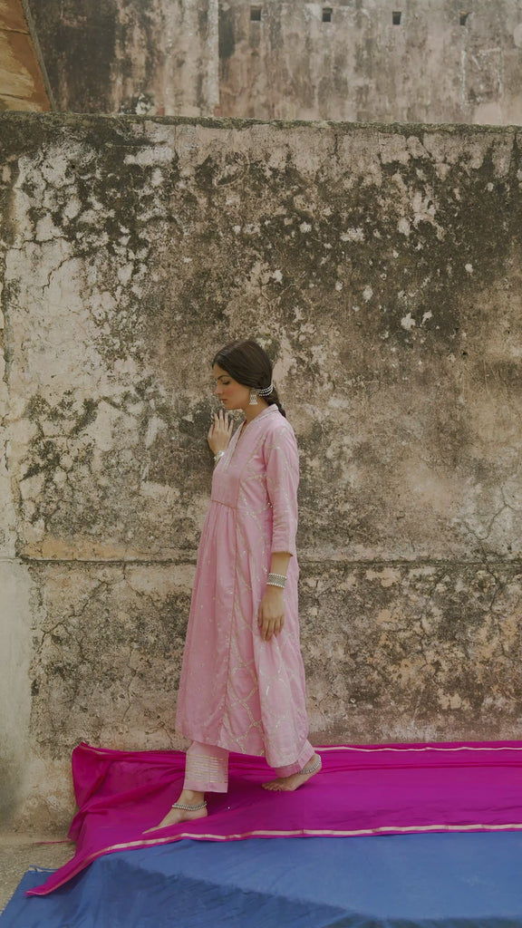 Pink Embroidered Mulmul Kurta Pant Set
