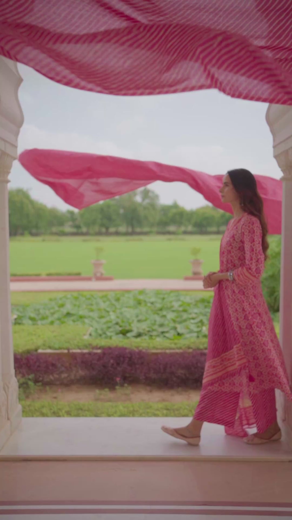 Rani pink Mulmul Kurta Pant Dupatta Set
