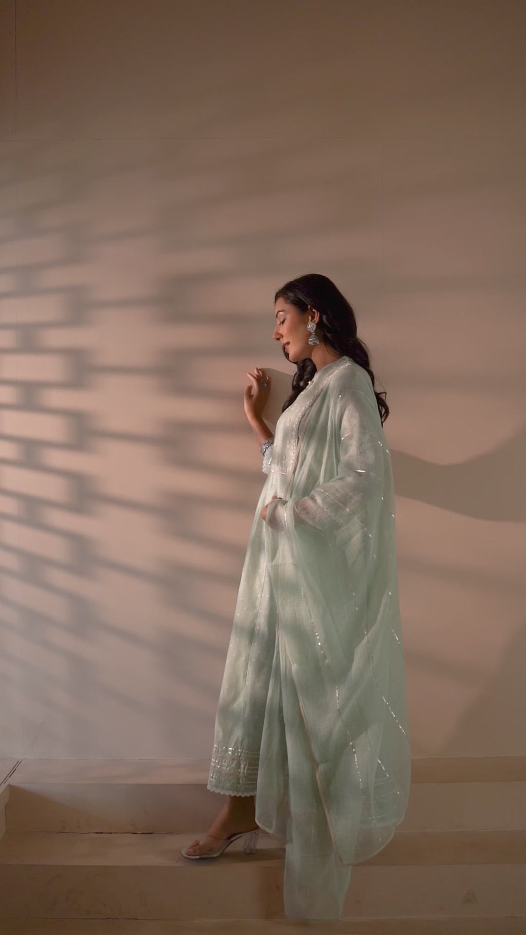 Sea Green Chanderi Thread Aari Embroidered Kalidaar Dupatta Set