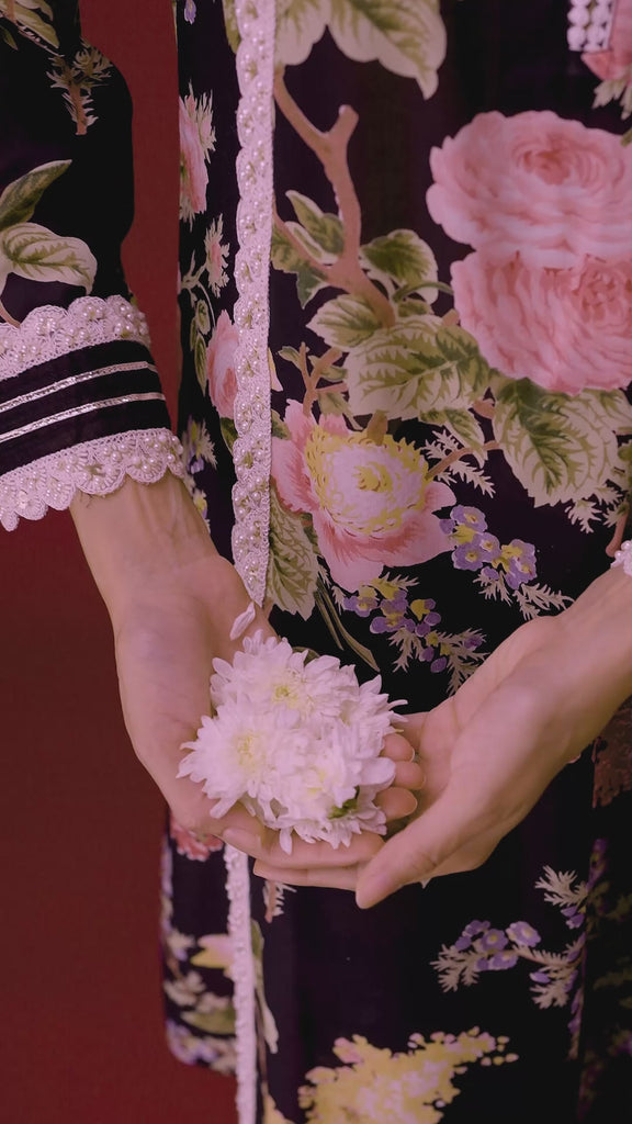 Black Printed Modal Co-Ord Set, designed to offer a perfect balance of style and comfort. The intricate lace adorned with delicate pearl beads enhances the overall refined look. this versatile co-ord set offers timeless appeal with a modern twist.