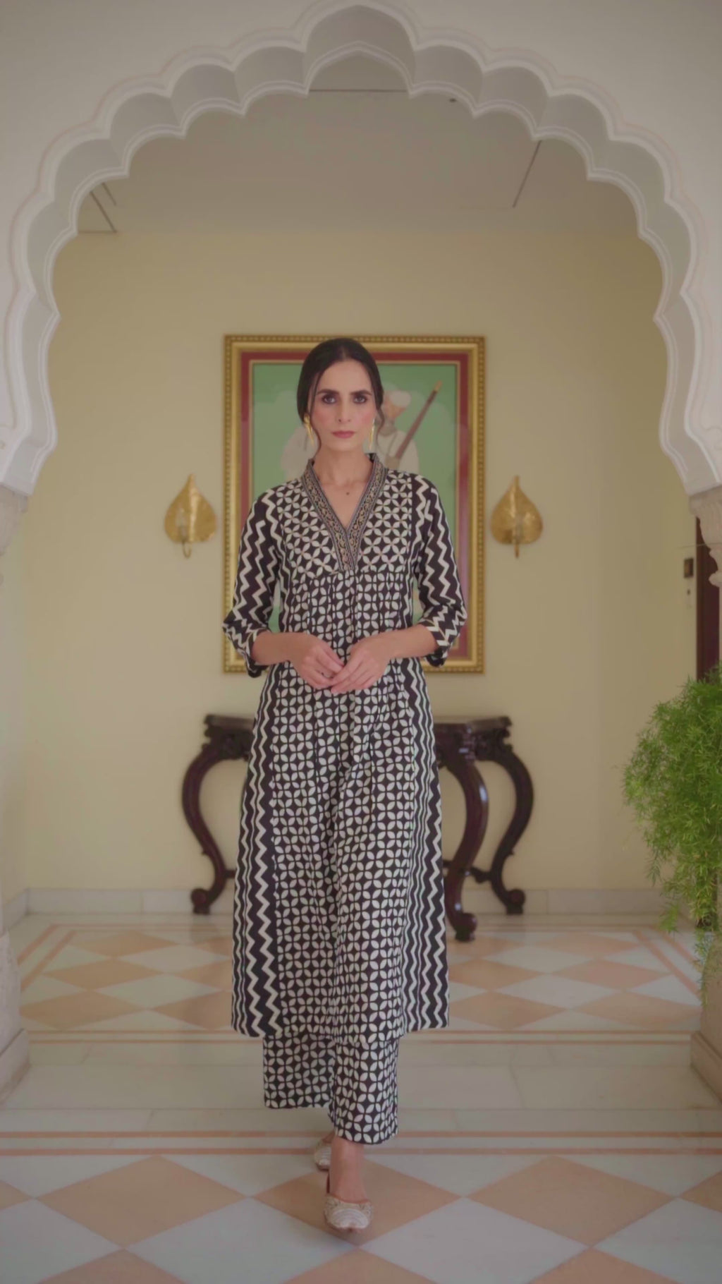 Monochromatic A-Line Embroidered Kurta Pant Co-Ord Set